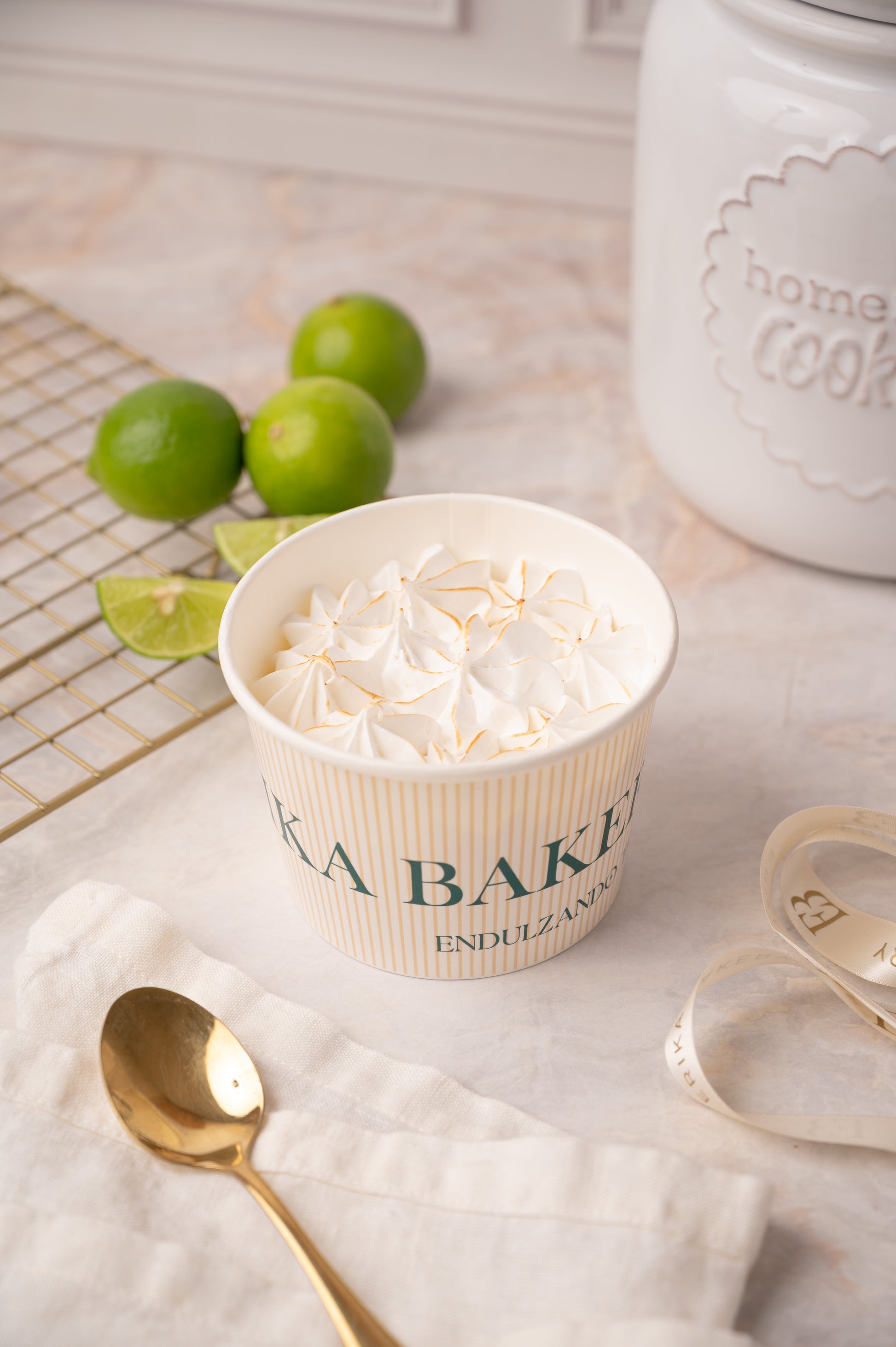 Base con galletas de vainilla, crema de limón y merengue, porción personal