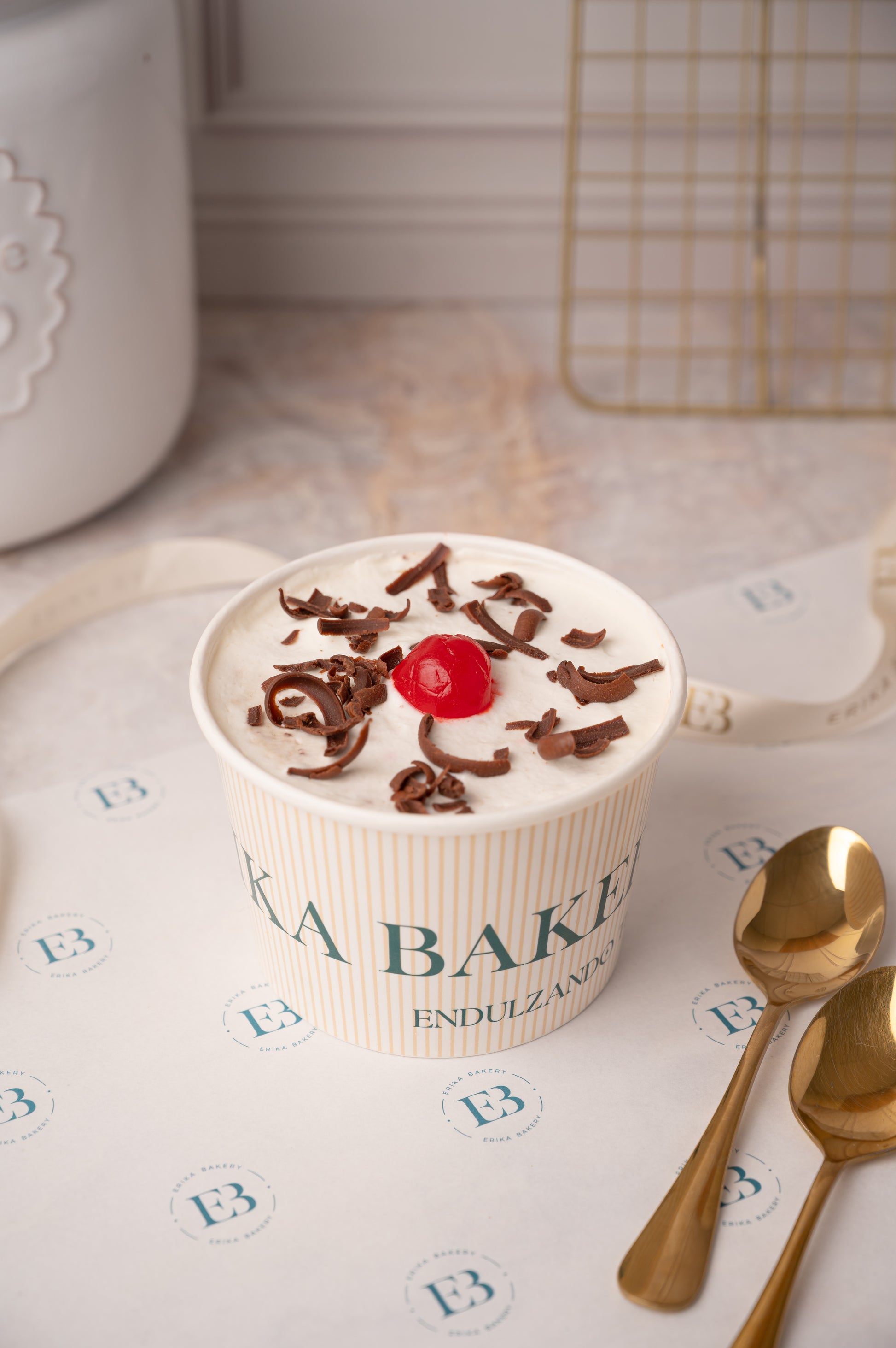 Capas de torta húmeda de chocolate relleno de fudge y chantilly con cerezas. porción personal