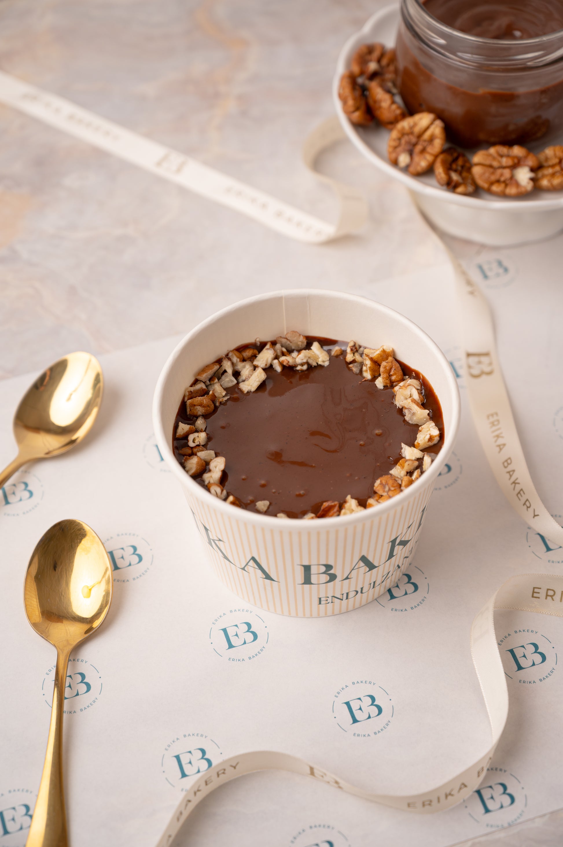 Capas de turrón de chocolate con pecanas con fudge a la olla